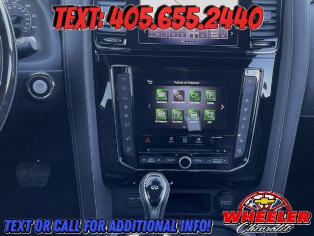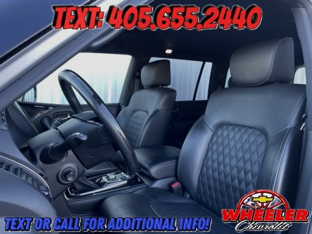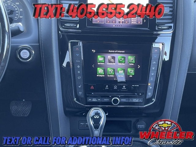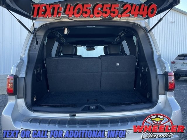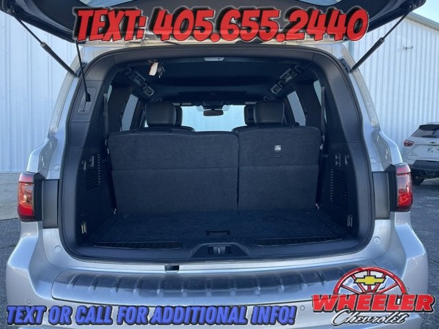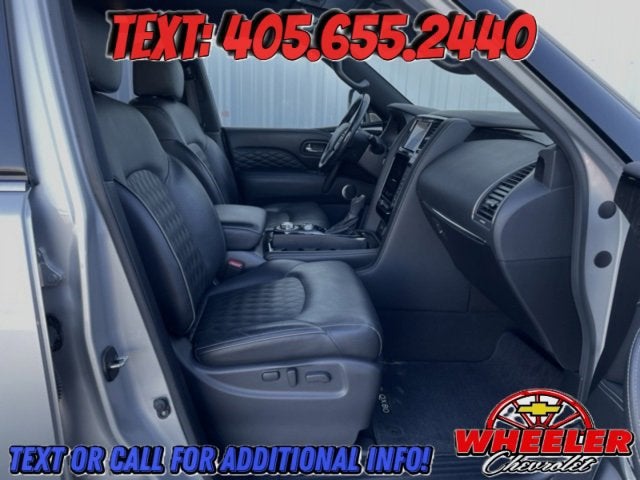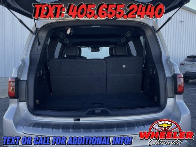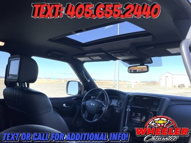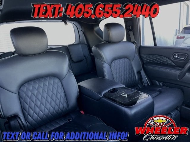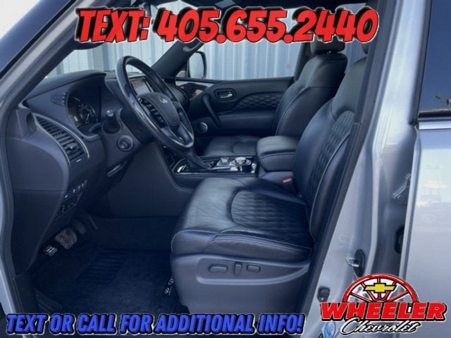 Please reach out: in case we missed a picture or a detail you would like to see of this QX80, we are happy to send you A PERSONAL VIDEO walking around the vehicle focusing on the closest details that are important to you. We can send it directly to you via text, email , or Facebook messenger. We look forward to hearing from you! ** Your western OK/TX low price value leader! We use a market based pricing formula, striving to be the best price of any comparable vehicle in our market area. See all our inventory at www.wheelerchevy.com !