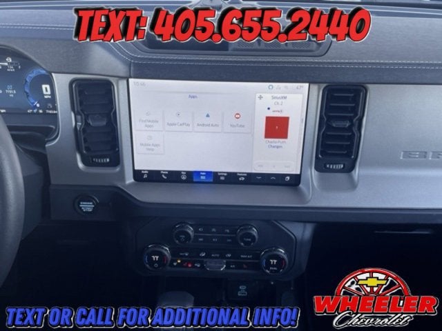 Please reach out: in case we missed a picture or a detail you would like to see of this Bronco, we are happy to send you A PERSONAL VIDEO walking around the vehicle focusing on the closest details that are important to you. We can send it directly to you via text, email , or Facebook messenger. We look forward to hearing from you! ** Your western OK/TX low price value leader! We use a market based pricing formula, striving to be the best price of any comparable vehicle in our market area. See all our inventory at www.wheelerchevy.com !